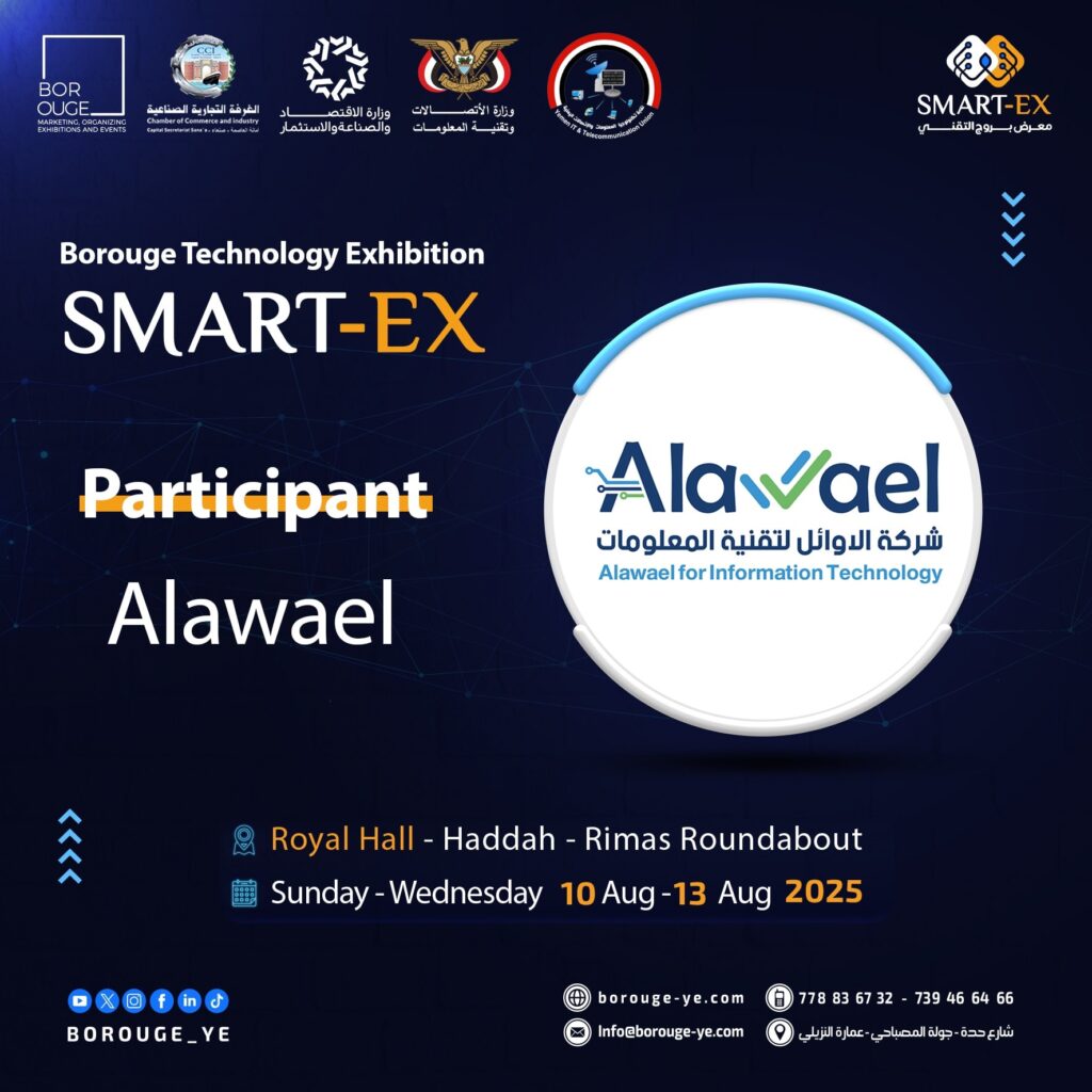 نرحّب بمشاركة شركة الاوائل لتقنية المعلومات في معرض SMART‑EX 2025 📱 نرحّب بمشاركة شركة الاوائل لتقنية المعلومات @alawaelinfo في معرض SMART‑EX 2025شركة يمنية