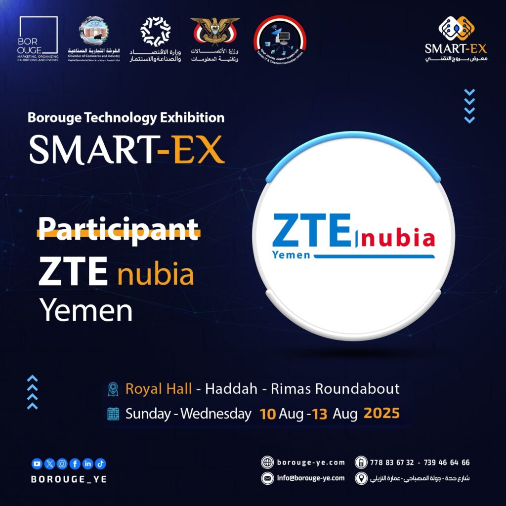نرحّب بمشاركة ZTE nubia Yemen في معرض SMART‑EX 2025 📱 نرحّب بمشاركة @zte_mobile_yemen في معرض SMART‑EX 2025فرع محلي يقدم هواتف ذكية تجمع بين قوة