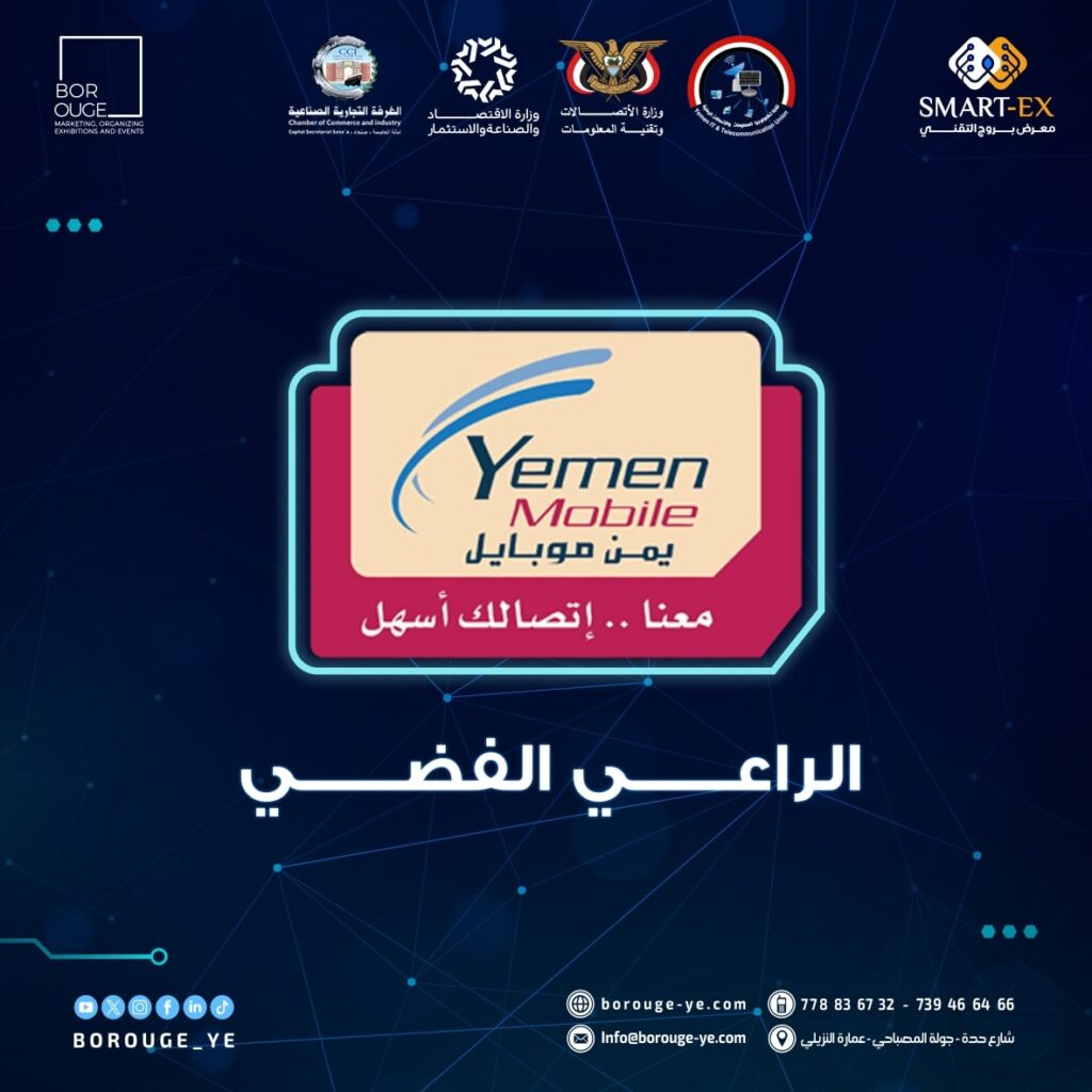 يسرّنا الترحيب بالراعي الفضي لمعرض SMART‑EX 2025 يمن موبيل 🥈 يسرّنا الترحيب بالراعي الفضي لمعرض SMART‑EX 2025 يمن موبيل @yemenmobileye1الشركة